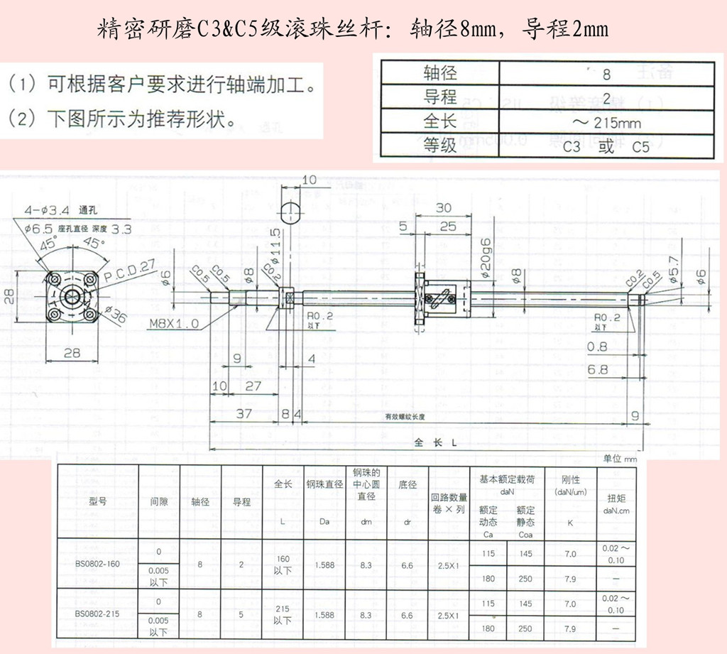 | 日本Sankyo精密研磨C3&C5级滚珠丝杆 >> BS0802 轴径8mm 导程2mm >> 精密C3&C5级滚珠丝杠BS0802 轴径8mm 导程2mm | |||||