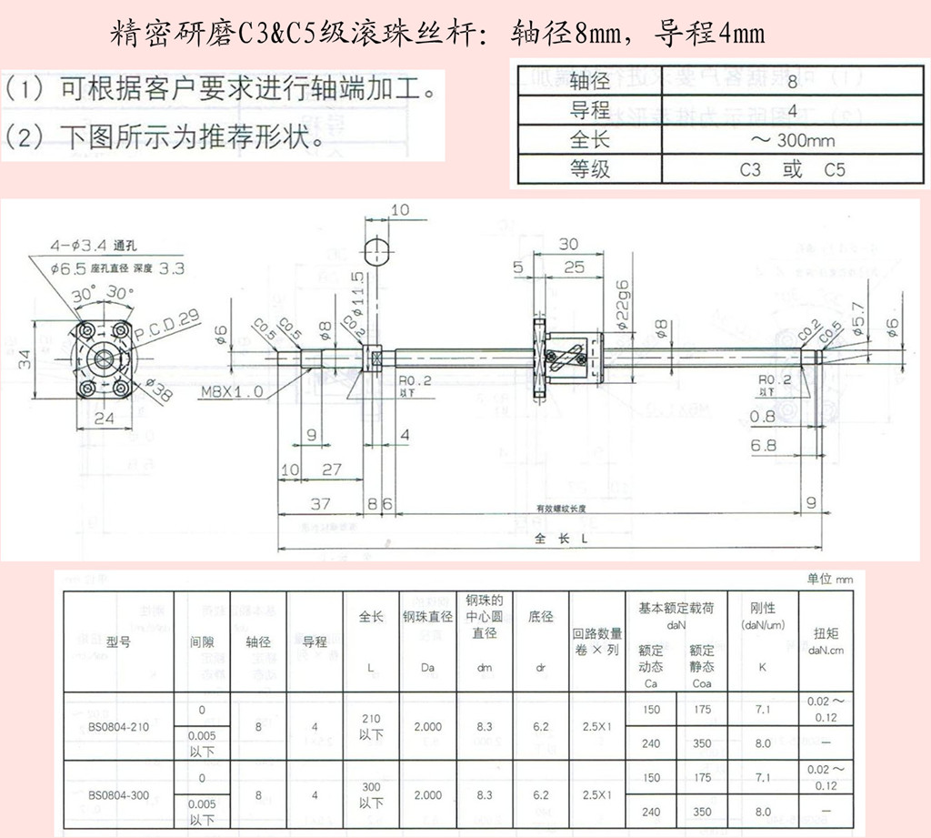 | 日本Sankyo精密研磨C3&C5级滚珠丝杆 >> BS0804 轴径8mm 导程4mm >> 精密C3&C5级滚珠丝杠BS0804 轴径8mm 导程4mm | |||||