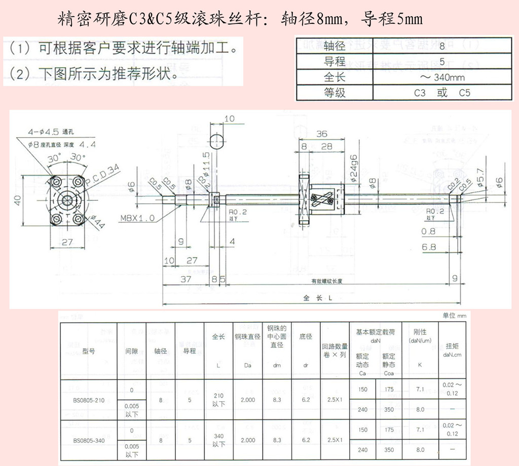 | 日本Sankyo精密研磨C3&C5级滚珠丝杆 >> BS0805 轴径8mm 导程5mm >> 精密C3&C5级滚珠丝杠BS0805 轴径8mm 导程5mm | |||||