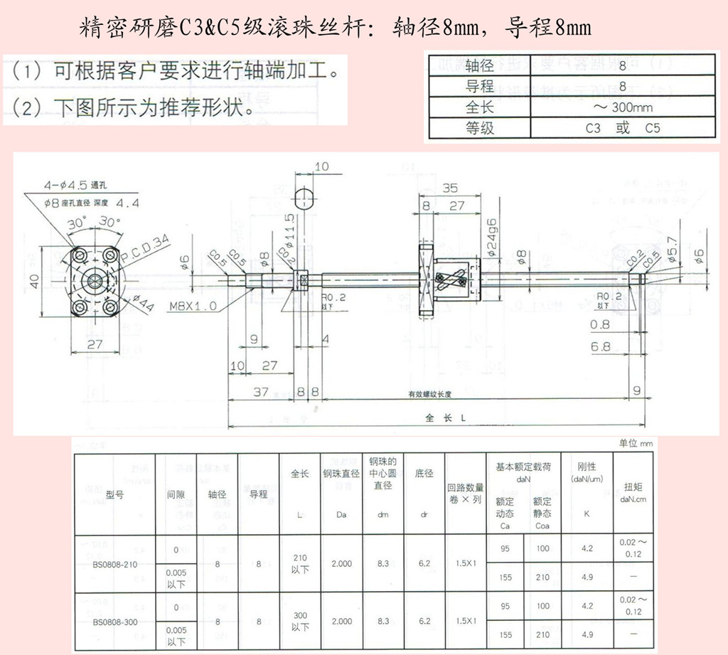 | 日本Sankyo精密研磨C3&C5级滚珠丝杆 >> BS0808 轴径8mm 导程8mm >> 精密C3&C5级滚珠丝杠BS0808 轴径8mm 导程8mm | |||||